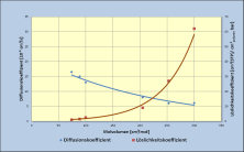 Während der Diffusionskoeffizient mit zunehmender Molekülgröße abnimmt, steigt die Löslichkeit einer Komponente mit wachsender Molekülgröße an. Im Falle, das die Löslichkeit einer Komponente zur dominanten Größe wird, wird diese Komponente schneller durch eine Membran permeieren als eine Komponente mir geringerer Löslichkeit bei vergleichbaren Diffusionskoeffizienten. So passiert Sauerstoff eine Schicht aus Silikon (PDMS) etwa doppelt so schnell wie Stickstoff, oder aber höhere Kohlenwasserstoffe (n-Butan, Pentan, etc.) die gleiche Membran schneller als Sauerstoff (z. B. bei der Benzindampfrückgewinnung). Die nachfolgende Grafik veranschaulicht die Einflüsse der beiden Kenngrößen in Abhängigkeit vom Molvolumen.