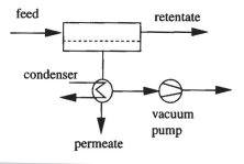 Das Ausgangsgemisch wird dem Modul bei der Pervaporation flüssig, bei der Dampfpermeation gasförmig zugeführt. Die Triebkraft wird meist durch Anlegen eines perrneatseitigen Vakuums erzeugt. In Sonderfällen kann die Perrneatseite auch mit einem Inertgasstrom gespült werden. Diese Verfahrensführung ist nur sinnvoll, wenn das Perrneat nicht zurückgewonnen werden soll oder mit dem Trägergas gemeinsam genutzt werden kann.